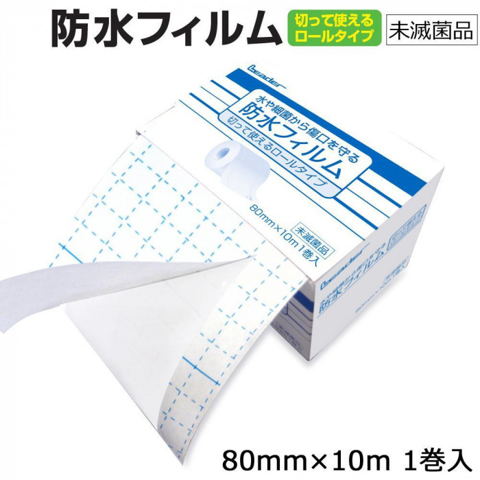 水や細菌から傷口を守る、切って使えるタイプの防水フィルムです。基材に柔軟性・伸縮性の高いウレタンフィルム、粘着剤として皮膚刺激の少ないアクリル系粘着材を採用。必要なサイズにカットしやすい目盛り付きです。 |