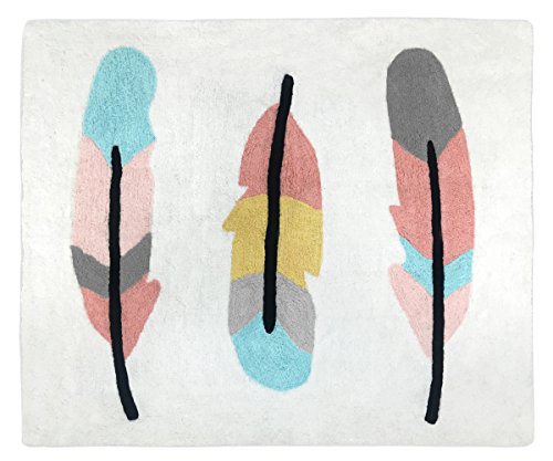 Sweet Jojo Designs Accent Floor Rug Bedroom Decor for Turquoise and Coral Feather Collection Kids Girls Bedding Set