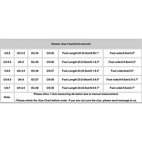 Studio : Sikye Publisher : Sikye Product Description Occasion: IndoorOutdoor,Fashion,Leisure Package: 1 Pair Women Shoes(including shoebox) NOTE: As different computers display colors differently,the color of the actual item may vary slightly from the above images. Women Size Chart(Unit:cm/inch) US:5 UK:2.5 EU:34 CN:35 Foot Length:22-22.5cm/8.99.1" Foot wide:8.5cm/3.5" US:5.5 UK:3 EU:35 CN:36 Foot Length:22.5-23cm/9.1-9.3" Foot wide:8.5-9cm/3.5" US:6 UK:3.5 EU:36 CN:37 Foot Length:23-23.5cm/9.1-9.3" Foot wide:9cm/3.5" US:6.5 UK:4 EU:37 CN:38 Foot Length:23.5-24cm/9.3-9.5" Foot wide:9-9.5cm/3.5-3.7" US:7 UK:4.5 EU:38 CN:39 Foot Length:24-24.5cm/9.5-9.7" Foot wide:9.5cm/3.7" 0