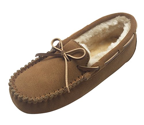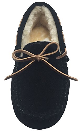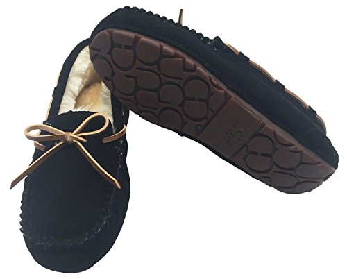 -. Binding : Apparel -. Brand : Luxehome -. Department : mens -. Feature : Faux fur-lined slipper featuring whipstitched moccasin toe and rawhide tie with around-the-collar lacing. / Leather-look upper with a warm thick berber lining. So the actual size is smaller 1 size than size chart. / Extra padded footbed and faux fur for bring you super comfort and warm. / Bow tie and riveting complete the look. / The very fashional and eye-catching style in this year. To be a real fashionista in the winter. -. ProductGroup : Shoes -. ProductTypeName : SHOES -. Title : Luxehome Comfortable Men's Leather Moccasin Slippers Winter Loafers Flats Doug Shoes