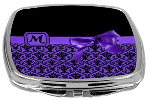 Rikki Knight Letter-M Monogram Damask Bow Design Compact Mirror, Purple, 2 Ounce