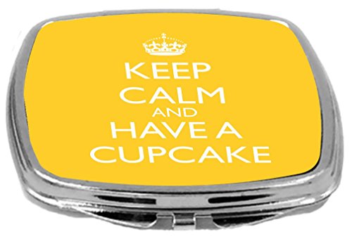 Rikki Knight Compact Mirror, Keep Calm and Have a Cupcake, Yellow