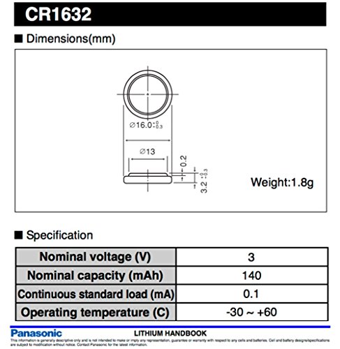 Panasonic ( 4 Pieces - CR1632 + 4 Bonus LED Bulbs ) Lithium Coin Cell Battery