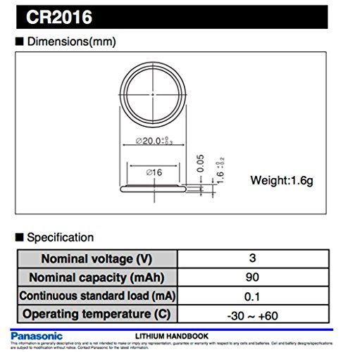 Panasonic ( 2 Pieces - CR2016 + 2 Bonus LED Bulbs ) Lithium Coin Cell Battery