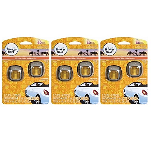 Febreze Car Vent Clip Air Freshener, Hawaiian Aloha Scent, 2 Count, (Pack of 3)