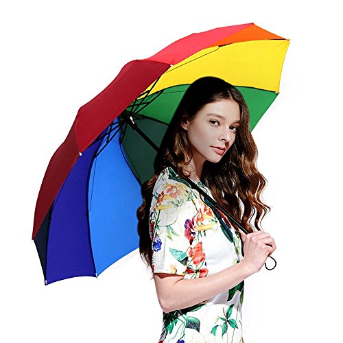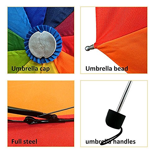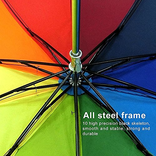 -. Title : Travel Umbrella, 10 Rib Strong Enough Wind Resistant Frame, Collapsible, Compact and Durable, Lightweight and Cute (Rainbow)
