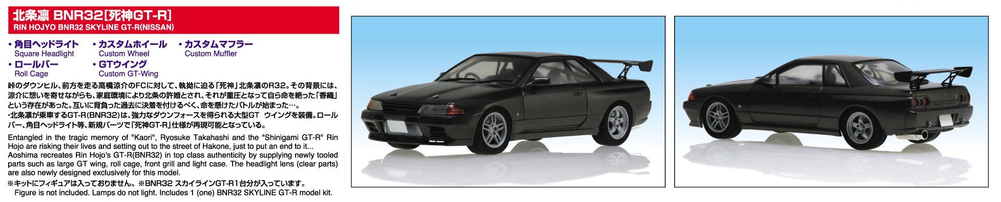 Super Car 1/24 Initials D No 4 Rin Hojo BNR32 Skyline Reaper Death GT-R Plastic Model Race Figure Aoshima