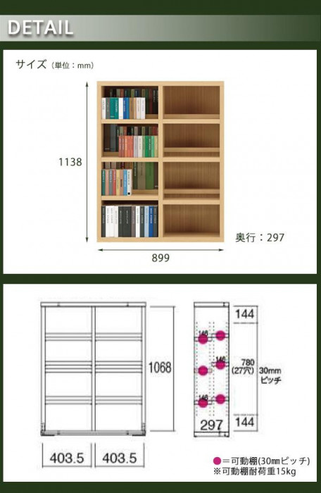 | 仕様 | 完成品 可動棚板:12枚 可動棚板耐荷重:15kg(1枚あたり) |