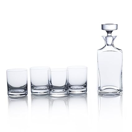 - 5-piece square decanter set includes 39-3/4 inch decanter and 11-3/4 ounce double old fashioned glass, set of 4
