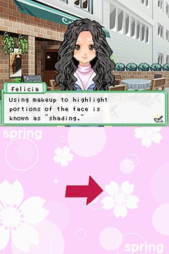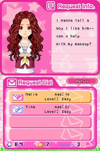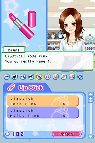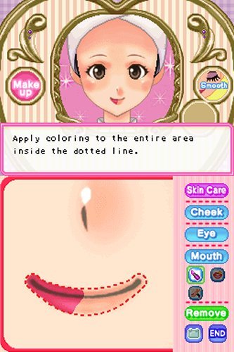 -. Feature : Use the Nintendo DS stylus to apply makeup, including foundation, lipstick, eye shadow, blush and more! / Receive requests from clients for particular makeup looks and then hit the town to ask friends and experts for advice on how to best achieve those looks. / Play fun mini-games to earn money and go shopping for clothes, hairstyles, accessories, makeup and more! / Practice your new makeup techniques on your character to get ready for dates. / Share items with your friends or play mini-games with them via DS wireless communications.