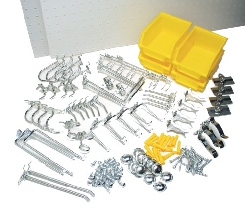 Triton Products DB-2Kit Two DuraBoard White Polypropylene Pegboards 24-Inch W by 48-Inch H by 1/4-Inch D with 48 pc, DuraHook Assortment, Hanging Bin System and Wall Mounting Hardware