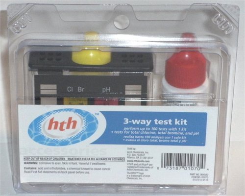 -. Feature : 3 way test kit / Performs up to 100 tests per 1 kit / Tests for total chlorine, total bromine & pH.