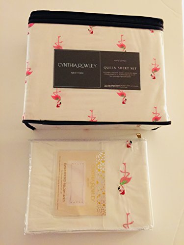 (Cynthia Rowley)/Bedding Bath/Bedding/DIRECT FROM USA/Cynthia Rowley Flamingo Birds on White QUEEN 100% Cotton Sheet Set Plus BONUS 2- Embroidered Pi...