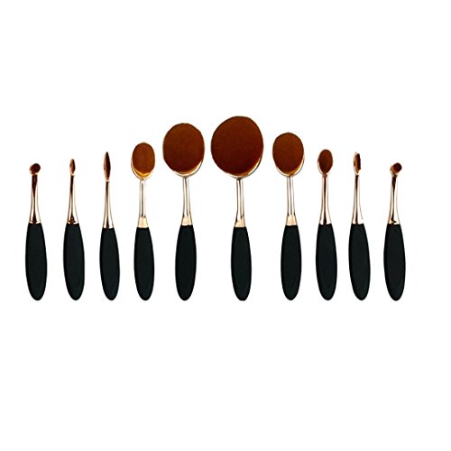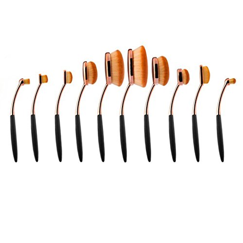 V-noah 10 Pcs Oval Makeup Brush Set Professional Foundation Contour Blush Concealer Eyebrow Eyeliner Blending Cosmetics Brushes Toothbrush...