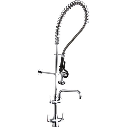 Elkay Solid Brass Commercial Kitchen Faucet with 8" Swivel Spout and Stainless Steel Sprayer, Single Hole Mount