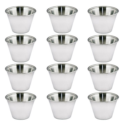 Product Description Stylish and contemporary 70ml stainless steel sauce cups, an ideal way of presenting sauces and condiments at the table. This 2.5oz/70ml stainless steel cup is perfect for serving any side sauce from Ketchup and Mustard, BBQ sauce, Mango Chutney 0