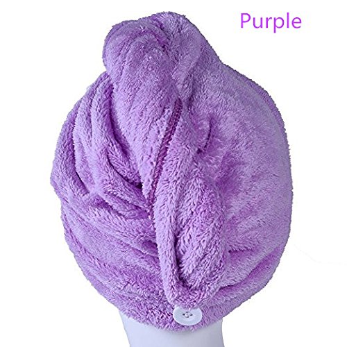 Joyden 2 Pcs Dry Wet Hair Cap Microfiber Drying Towel Turban Towel Wrap - Super Absorbent Drastically Reduce Hair Drying Time (Puple,Blue)