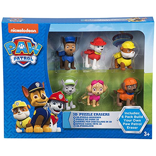 -. Binding : Spielzeug -. Brand : AK Sport -. EAN : 5055114338667 -. Feature : Paw Patrol 3D Puzzle Erasers 6 Pack / Put the erasers together yourself! / Featuring 6 of your favourite characters including Chase, Marshall, Rubble, Rocky, Skye and Zumba / Official licensed Paw Patrol product / Suitable for children 3 years and older -. IsAdultProduct : 0 -. Label : AK Sport -. Manufacturer : AK Sport -. Model : 1410010 -. MPN : 1410010 -. PackageQuantity : 1 -. PartNumber : 1410010 -. ProductGroup : Toy -. ProductTypeName : TOYS_AND_GAMES -. Publisher : AK Sport -. ReleaseDate : 2016-07-11 -. Studio : AK Sport -. Title : AK Sport 1410010 - Paw Patrol 6 Pack Gum Puzzle -. Warranty : 1 year warranty provided by the manufacturer from date of purchase