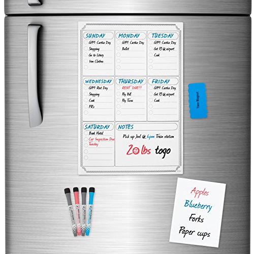 Magnetic Dry Erase Weekly Calendar For Your Fridge | Weekly Refrigerator Planner With 4 Tip Markers, Magnet Eraser & White Board | Perfect Kitchen Organizer For Chores, Appointments & Family Notes