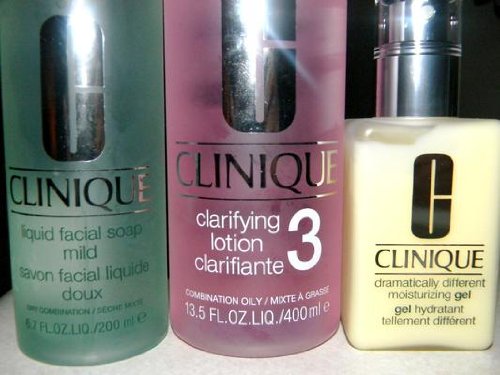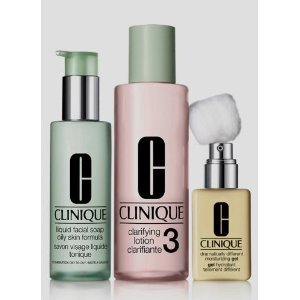 Can great skin be created? Yes. Our custom-fit dermatologist-developed system of cleanse, exfoliate, moisturize is clinically proven to bring skin around to that famous Clinique glow. Just 3 steps, 3 minutes, twice a day. How to Use: Lather Liquid Facial Soap Oily with water. Massage over face, rinse and pat dry. Using cotton ball, sweep Clarifying Lotion 2 over face. Apply Dramatically Different Moisturizing Gel to face.Feature