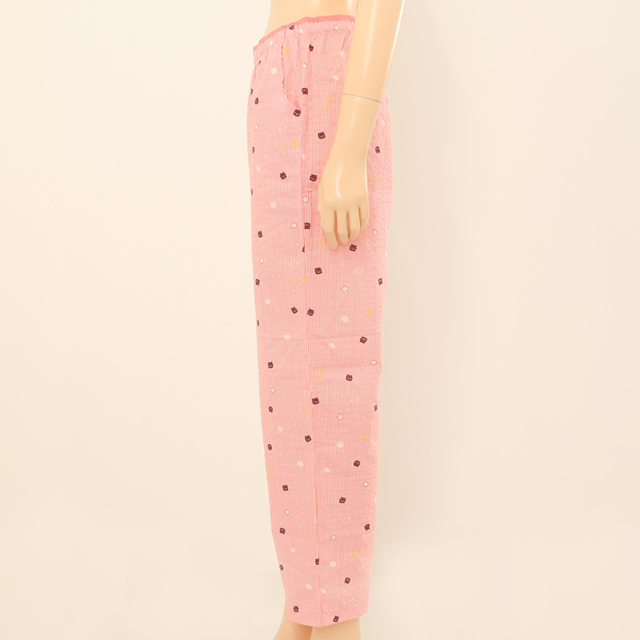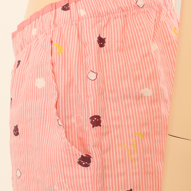 귀여운 고양이 캐릭터와 스트라이프 패턴이 어우러져 심플하고 깔끔한 느낌의 파자마 바지입니다.