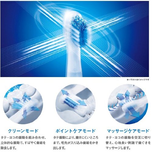 -. Feature : サイズ:全長約230×外径21mm(ブラシ含む) / 本体重量:約 / 素材・材質:ABS樹脂 / 原産国:中国 / 電源:AC100V 50/60Hz / 消費電力:約2W(充電時) / 保証期間:1年 / 付属品:トリプルクリアブラシ1本、極細マイルドブラシ1本、充電器1台、ブラシスタンド1台 / 振動数:クリーンモード 約25,500回/分、マッサージケアモード 約13,000~33,000回/分、ポイントケアモード 約33,000回/分 / 連続使用時間:約30分 / 充電時間:約10時間