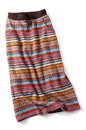-. Title : リブ イン コンフォート こっそり暖か インナーボアパンツ付き華やか柄ロングスカート〈ブラウン×レッド〉