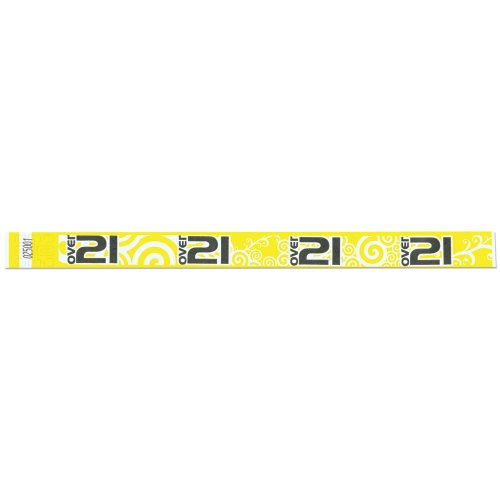 -. Binding : Sports -. Brand : Precision Dynamics -. Color : Yellow -. EAN : 0633090590962 -. Feature : Width 3/4" / Expressions wristbands feature fun, colorful pre-P.R.Inted designs that your guests will love!.Rotate colors and designs for different days of the week to keep your admissions secure / Made of DuPont® Tyvek® which is economical, water-resistant, and comfortable. / One size fits all. Strong adhesive closure with tamper-resistant feature that shreds if tampered with. Wristbands are serial numbered. -. HazardousMaterialType : Unknown -. Label : Precision Dynamics -. Manufacturer : Precision Dynamics -. Model : NTX89-14-PDM -. MPN : NTX89-14-PDM -. PackageQuantity : 500 -. PartNumber : NTX89-14-PDM -. ProductGroup : Sports -. ProductTypeName : SPORTING_GOODS -. Publisher : Precision Dynamics -. Size : 3/4" -. Studio : Precision Dynamics -. Title : Tyvek Wristbands - Over 21 Pattern - Bar - Night Club - Alcohol Serving Events - Yellow Color - 500 Pieces of Wristbands per Box -. UPC : 633090590962