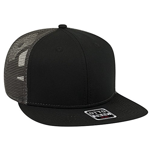 (Otto Caps)/Accessories/Hats/DIRECT FROM USA/Otto Square Flat Visor Otto Snap 6 Panel Mesh Back Trucker Snapback Hat - Blk/Blk/CH.Gry