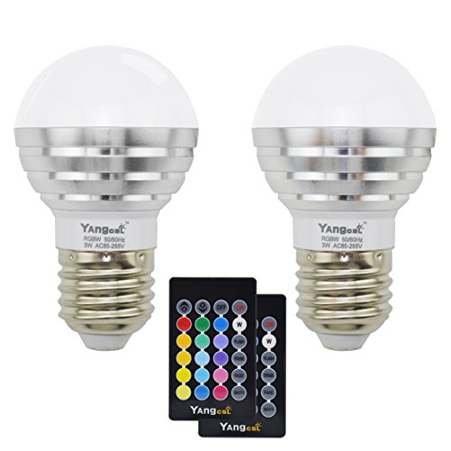 Yangcsl 3W RGB LED Light Bulb Color Changing and Warm White Dimmable with Remote Control,RGBW (Pack of 2)