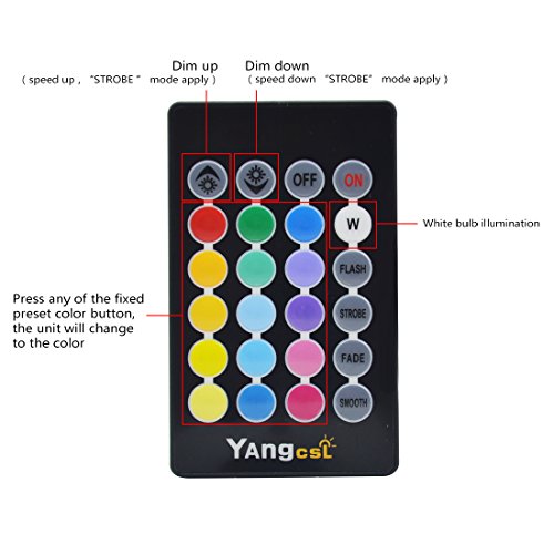 - What you get: Yangcsl 3W RGBW Color Changing Light Bulb *2, Remote controller*2(battery included); we also offer you Yangcsl (TM) High Quality Standard 18-month warranty and friendly customer service. If you have any problem, Please do not Hesitate to contact me.