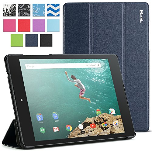 Sheathed in quality textured PU leather, the Slimline has the handsome looks to match its utility. The trifold cover folds up and magnetically snaps into a triangular stand, for comfortable typing and viewing positions. The velvety Microfiber inner lining keeps the beautiful display dust-free, and the hard-shell polycarbonate back snaps on and protects the back of the tablet. Keep your Google Nexus 9 shielded and unencumbered, as intended by the tablet's designers.