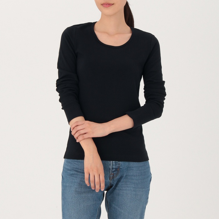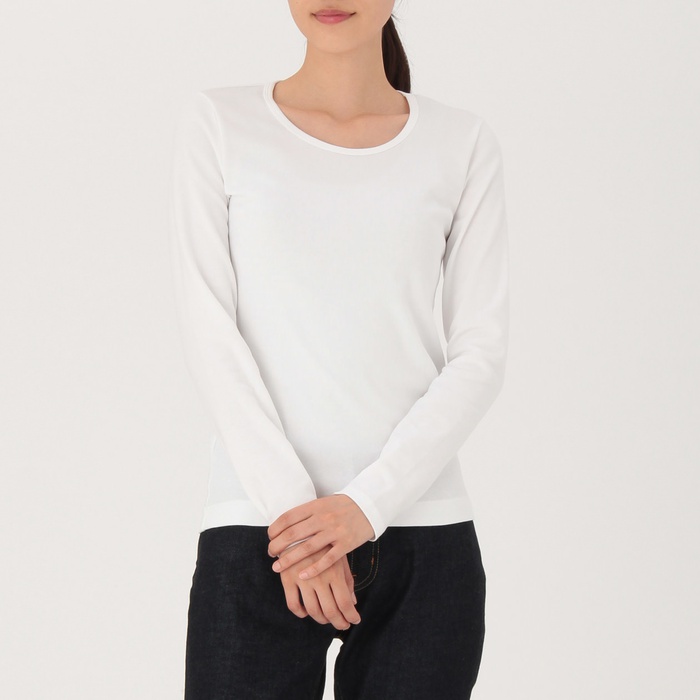 원본상품명: オガニックコットンストレッチクルネック長袖Tシャツ 婦人XS白コンビニ受取可