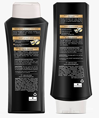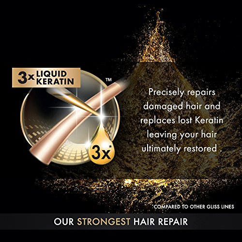 This high-performance formula with 3X liquid keratin precisely repairs damaged hair and replaces lost Keratin leaving your hair restored and comb able. (Compared to other GLISS hair repair lines).