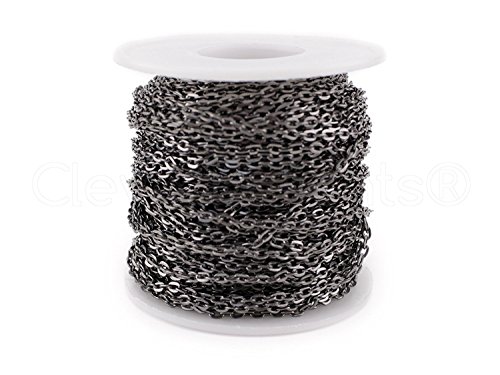 CleverDelights Rolo Chain Roll - 30 Feet - Gunmetal (Dark Silver) Color - 3x4mm Link - Bulk Spool