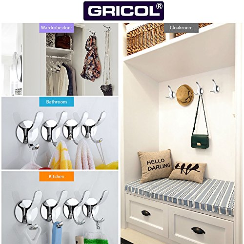 Gricol Coat Robe Hook Single Towel Hook 3M Self Adhesive Wall Hooks Polished SUS 304 Stainless Steel Suction Cup No Drills Hooks For Bathroom Kitchen Organizer Towel Key Robe Hooks On Door Wardrobe