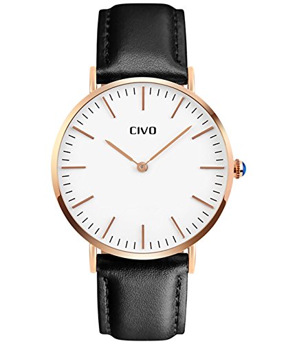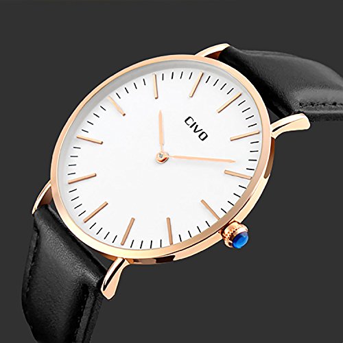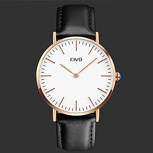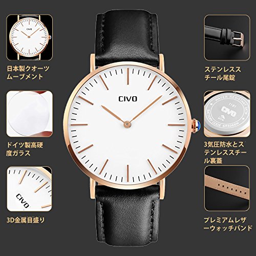 -. Title : CIVOメンズ腕時計 アナログクォーツ防水腕時計 アナログウォッチ ホワイトダイヤル 3Dゴルード目盛り シンプルデザイン 日本製クォーツ カジュアルビジネス男性用 ファッション腕時計 本革替えベルト 日本語取扱書