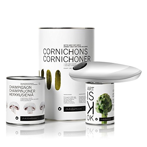 3. This stylish kitchen gadget will self adhere to any can and automatically open it in seconds. We suggest you give some pressure by hand on the top of the opener to let the can opener self adhere to the cans.