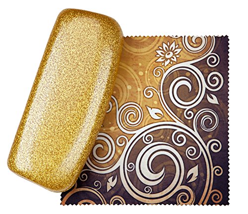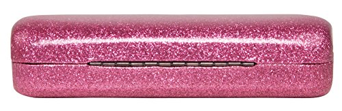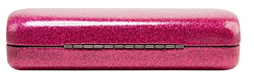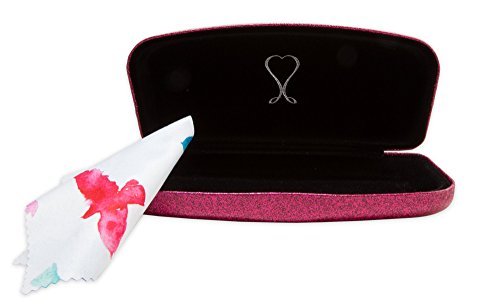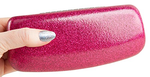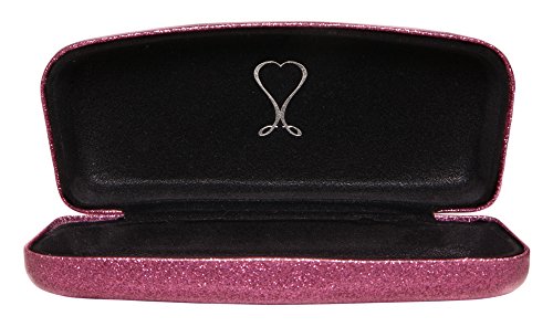 Pink Bliss Small Premium Fashion Women's Hard Eyeglasses Case by Spunky Soul | Glitter Pink | Bonus Cleaning Cloth