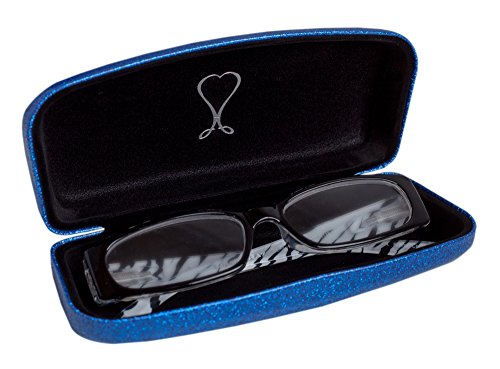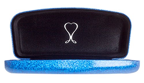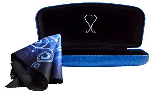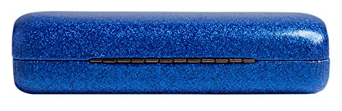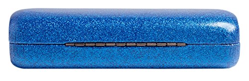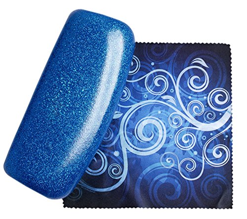 Sapphire Blue Medium Premium Fashion Women's Hard Eyeglasses Case | Smooth Glitter | Bonus Cleaning Cloth