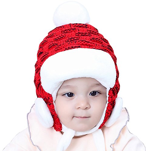 Desigh: Cute pompoms on the top with color block cartoon pattern,this cap is so lovely for your little baby. Thicken velvet on the inside,warm your baby in the cold weather. This cap totally shows your love.