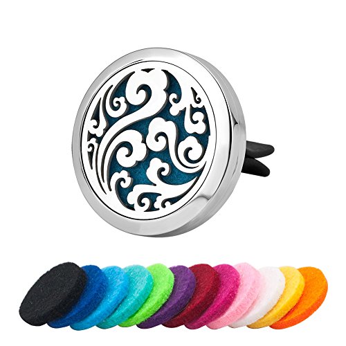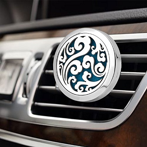 Third Time Charm Car Aromatherapy Essential Oil Diffuser For Car Vent Clip Air Freshener Cloud Stainless Steel Locket, 12 Refill Pads