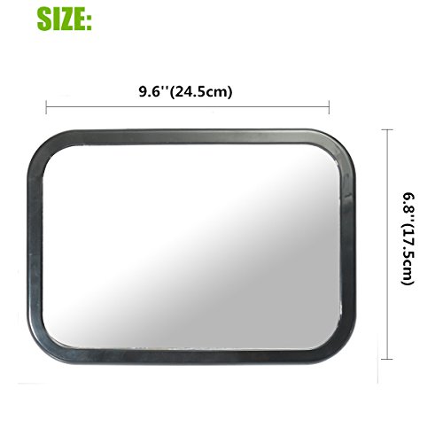 -. Feature : ☀WIDE ANGLE VIEW - The mirror is convex mirror which provide the extra-large wide angle vision according the P.R.Inciple of physics.you can observe your baby and surrounding clear in anytime. Giving you rest assured when you in driving. / ☀SHATTERPROOF GLASS PROTECTION - Mirror made of acrylic material which features supper shatterproof performance and the weight is lighter than other generic glass,will not harm people's health even use for long time.The mirror rim made of ABS which features crashproof. / ☀360 DEGREE ROTATING DESIGN - There a adjuster ball inside ,allows you to rotate the mirror 360 degree without any trouble and to find the best angle that viewing your baby easy and clear. / ☀DOUBLE FIXED STRAP - Many parents worry about the mirror can't be fasten and easy fall of hurt your baby during the driving .The item with high performance double strap to fix and with hard fixed buckles, making the mirror fit closely the car seat headrest also will not fall off. / ☀EASY TO INSTALL - Just set the mirror on the car headrest ,adjust the belt and tighten it ,fasten the buckles.it's very quick and convenience also easy to assemble and dismantle. Size:9 x 6 inch(24.5x17.5cm) ,suitable for almost car,we provide the clear pictures to refer.