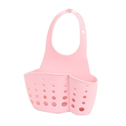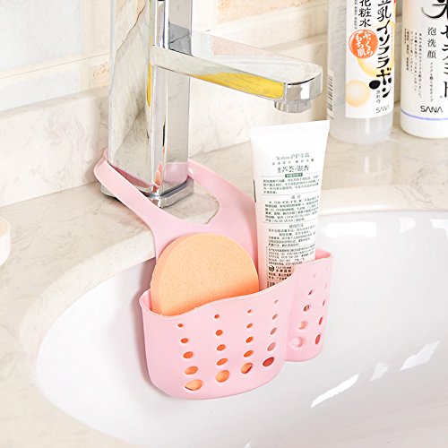 Snap Adjustable Kitchen Sponge Storage Basket with Drain (Pink)