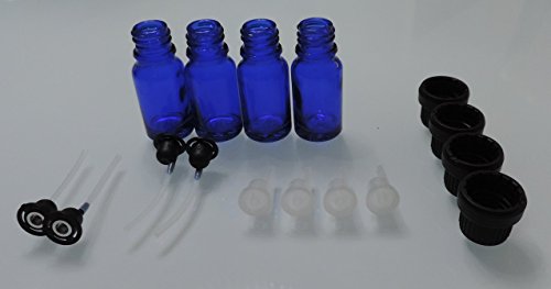 Cobalt Blue Glass 10 mL Empty Bottles for Essential Oil Aromatherapy Guaranteed Perfect Fit for Two Scents Nebulizer Diffuser - Washers and Nozzles Included