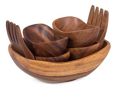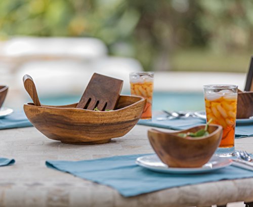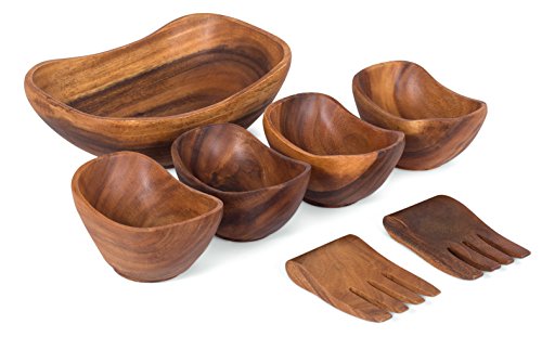 Accent your dinner table with this beautiful Acacia Hardwood Salad Bowl set. Each piece is hand carved from a solid block of Acacia, so that the natural grain of the wood is seamless, and the texture smooth and pleasant to the touch. You will love this set now and for years to come.