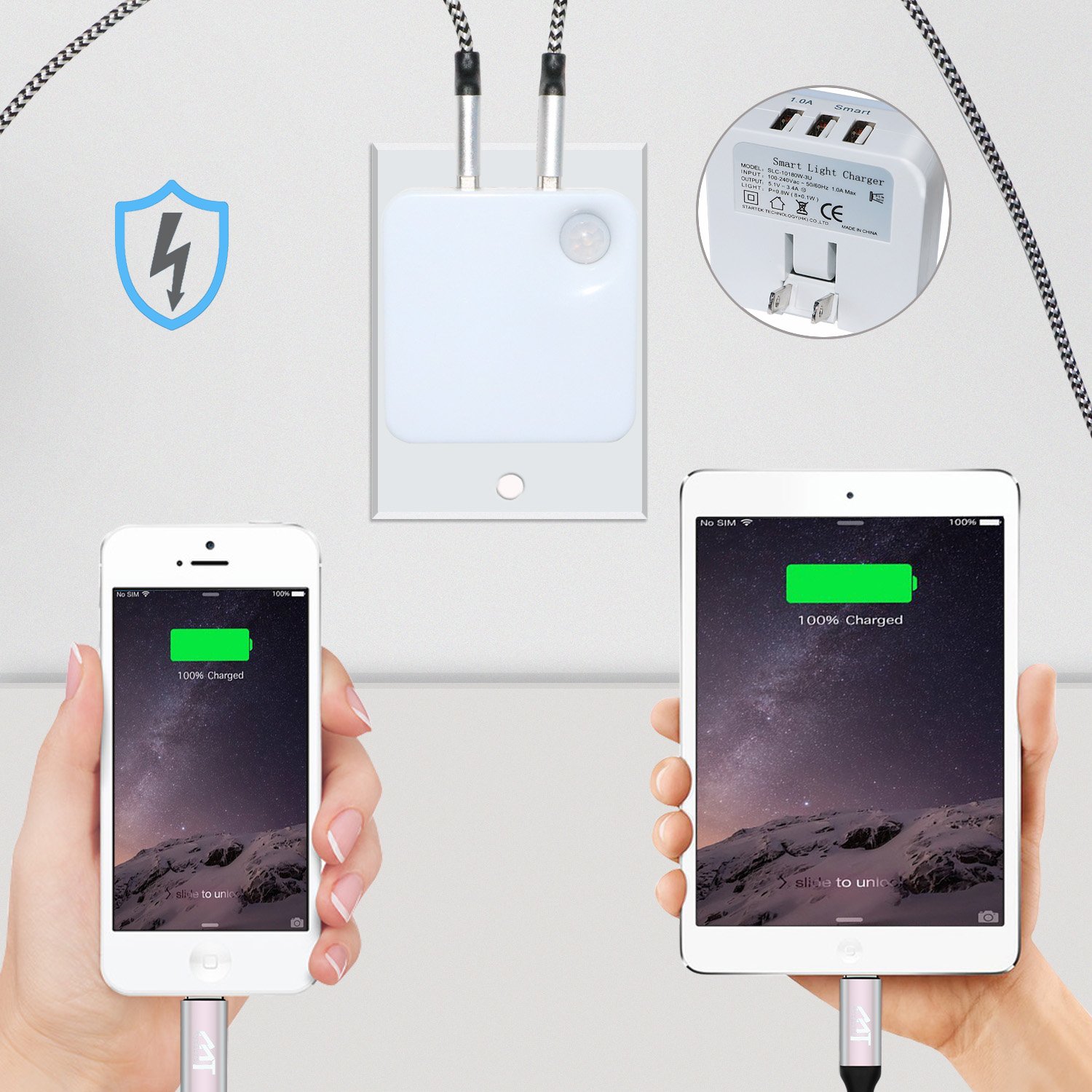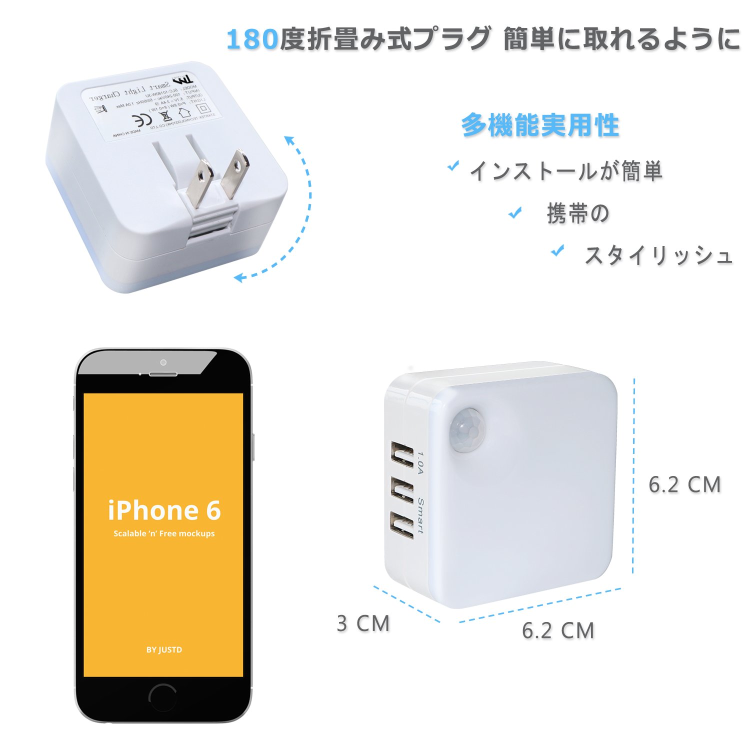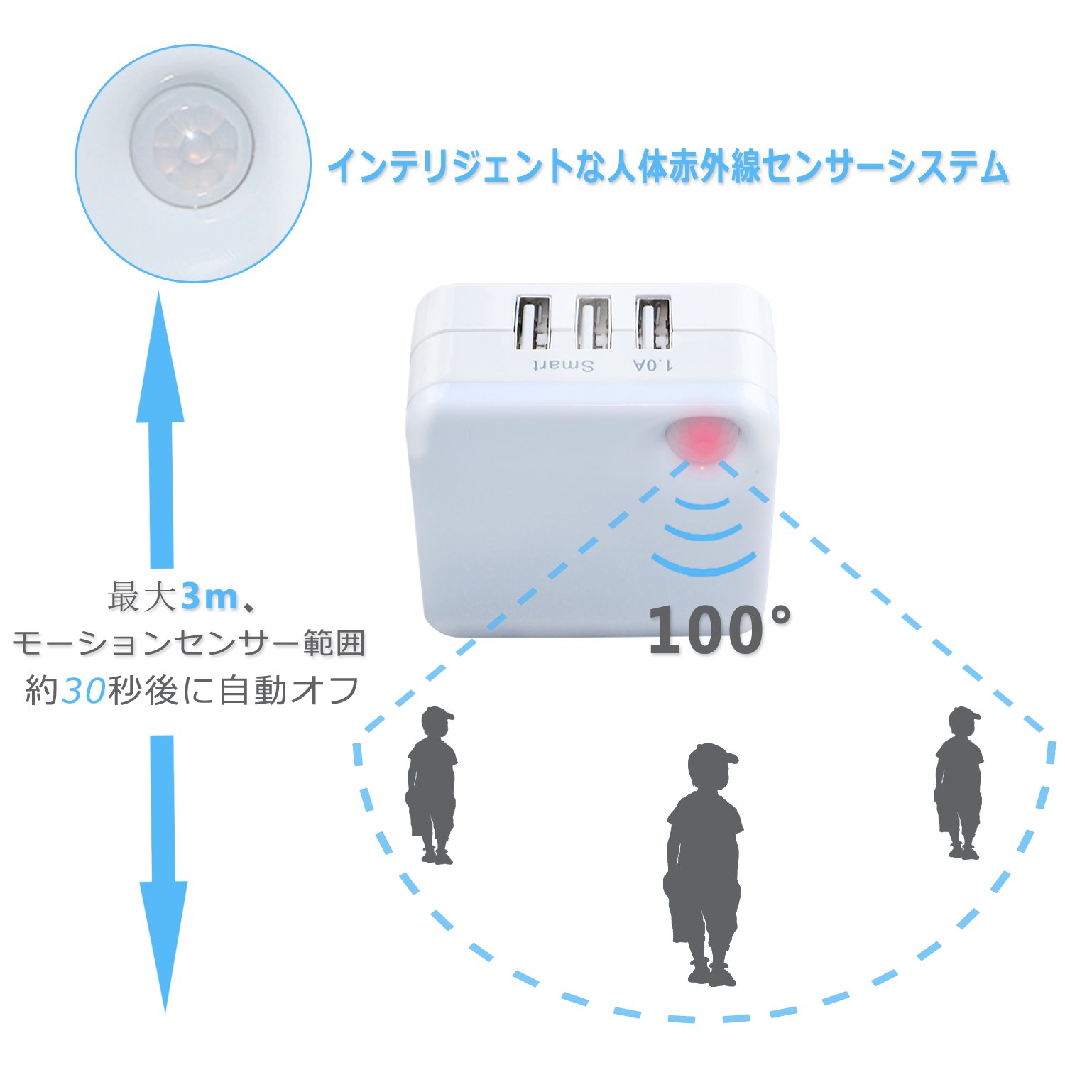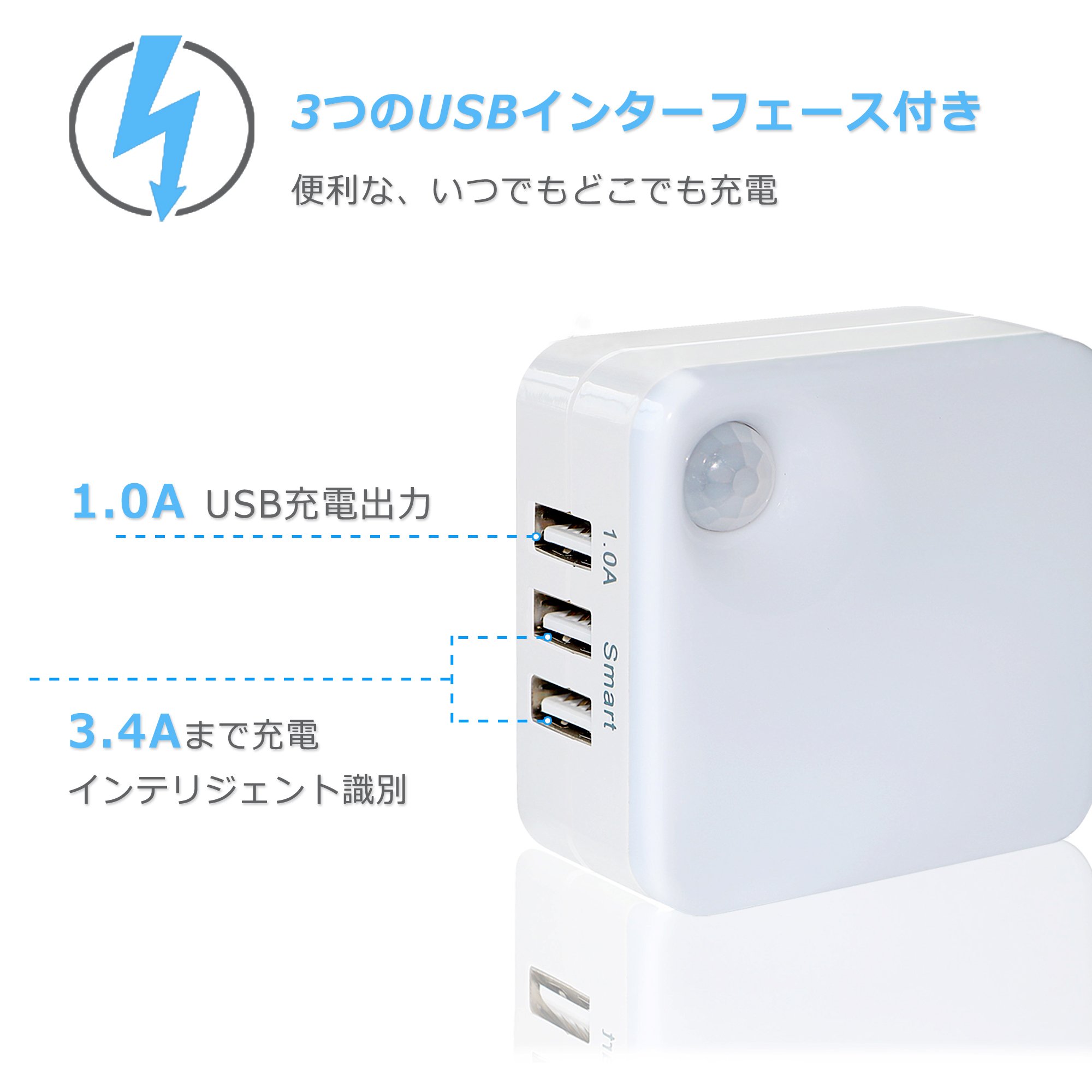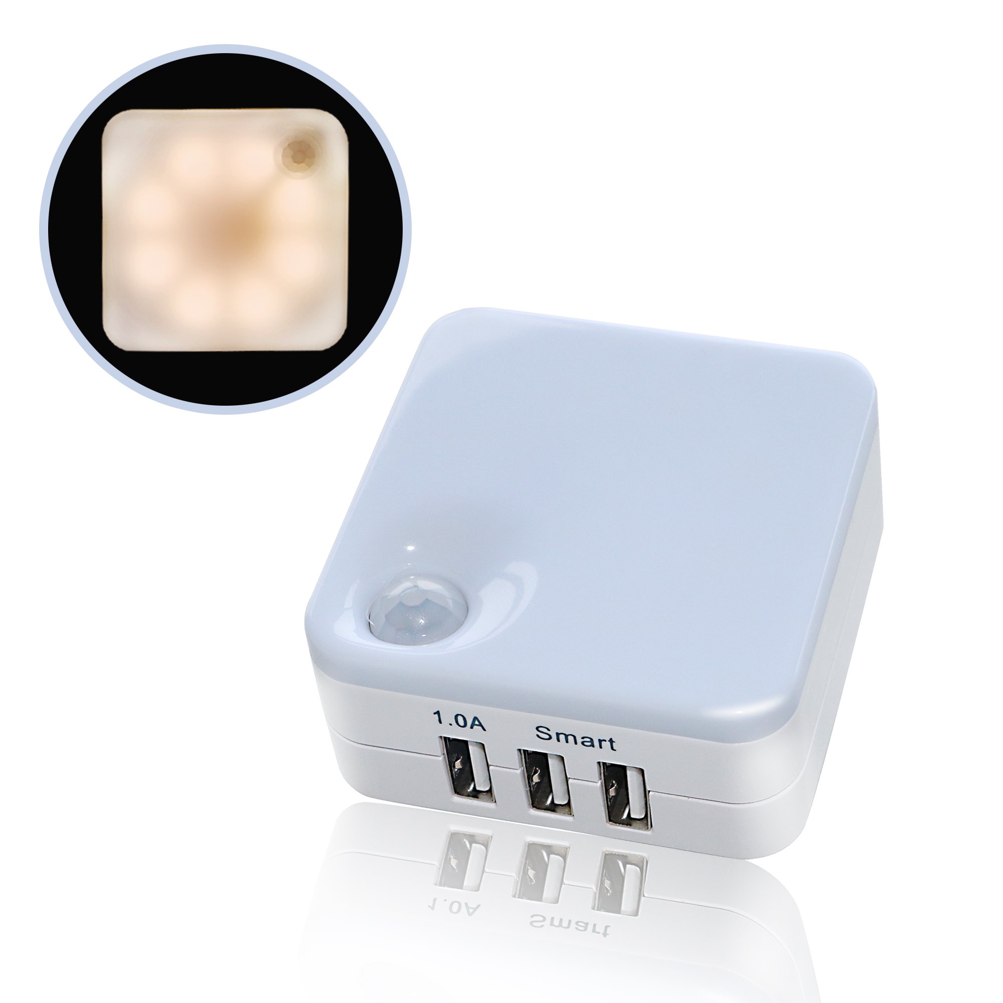 Unlike the traditional sensor light on the market, it not only provides night lighting function, but also the three USB interface can provide multi-device charging, does not take up more space.