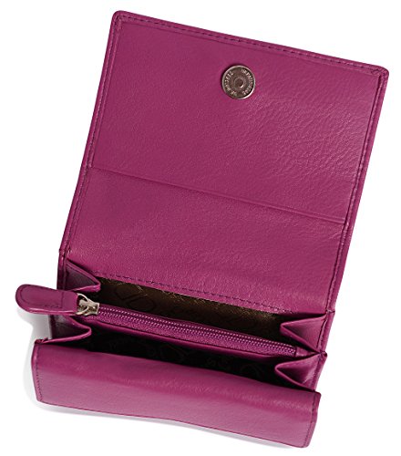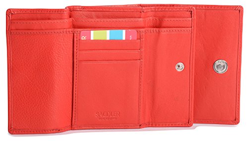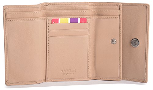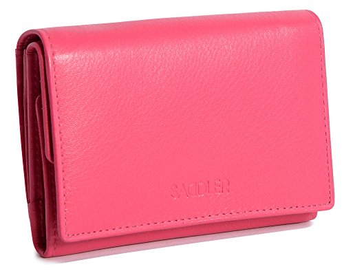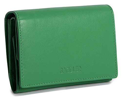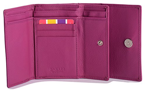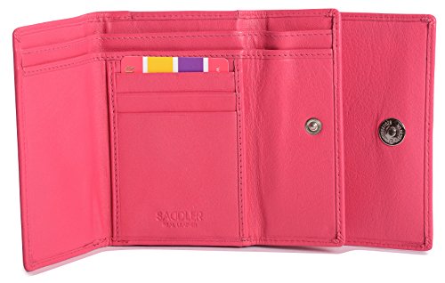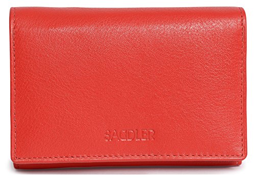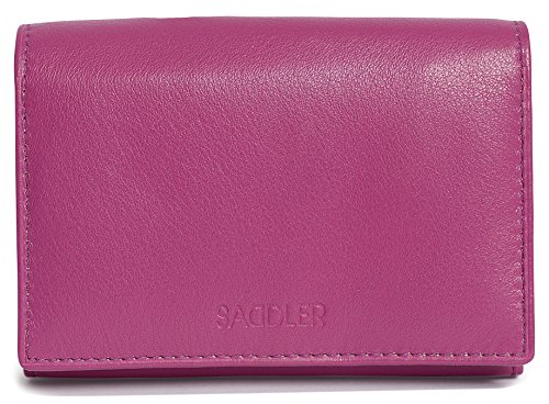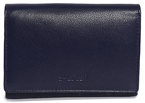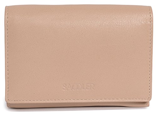Binding : Apparel Product Description SADDLER is the quintessentially British Leather Goods Brand that traces its heritage back more than 25 years. Every SADDLER piece combines the finest leathers handcrafted by experienced artisans employing traditional leather skills with creative design and eye-catching colour that makes any SADDLER piece an ideal real leather gift. The SADDLER Essence Collection bears all the hallmarks of excellence across a comprehensive range of ladies accessories destined to impress those even with the most discerning tastes. The outer of each piece is distinctively embossed with the SADDLER logo whilst the interior is lined with SADDLER monogrammed woven jacquard lining. High quality fittings are used to enhance the natural beauty of these full grain cowhide wallets and, as a finishing touch, the Saddler Essence range is delivered to you in its own innovative gift packaging. This 12 cm ladies double flap purse note case has a full front flap secured with magnetic snap, this opens to reveal a large slip in pocket on the back of the front flap cover and a roomy 3 section purse with the central one, incorporated in the central divider, secured with a top zip. The second half flap opens to reveal a large tri-fold note section, the central panel has 3 credit card slots with a slip in pocket to its rear. There are 2 full length note sections at the top (18cm x 9cm). This compact and versatile purse is completed with a slip in pocket on the outside rear of the purse. Approximate Size 12.0cm x 9.0cm x 3.0cm when closed and empty and weighs approximately 90 grams. 0