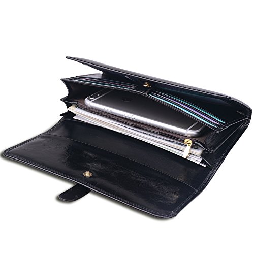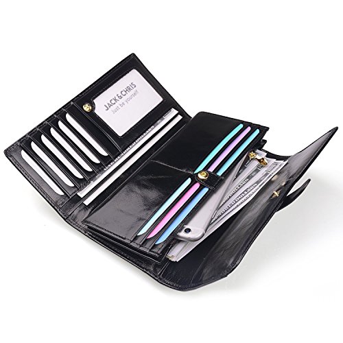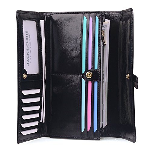 -. Title : Jack&Chris Women's Genuine Leather Long Tri-fold Snap Button Wallets Purse, WBXH049