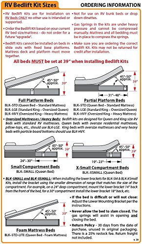 Bedlift Kits are size and weight specific - make sure you select the correct kit for your RV - see chart. If you are unsure, contact Hatchlift for assistance before ordering.